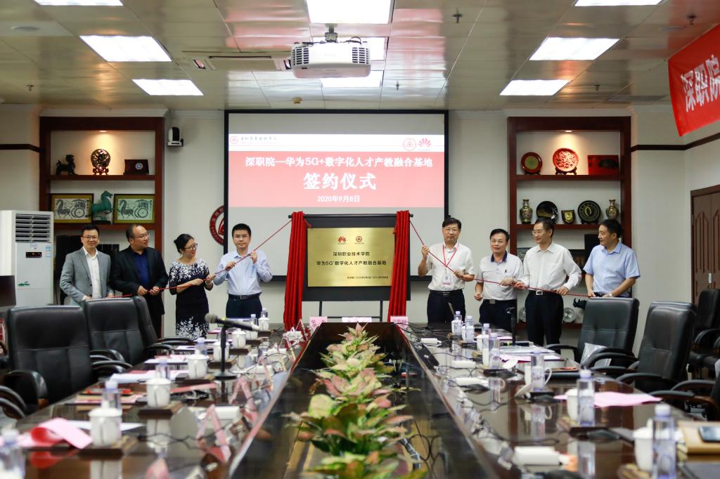 隨后,閻偉與馬曉明共同簽署了《深職院—華為5G+數(shù)字化人才產(chǎn)教融合基地合作協(xié)議》。領(lǐng)導(dǎo)嘉賓共同為基地揭牌。
