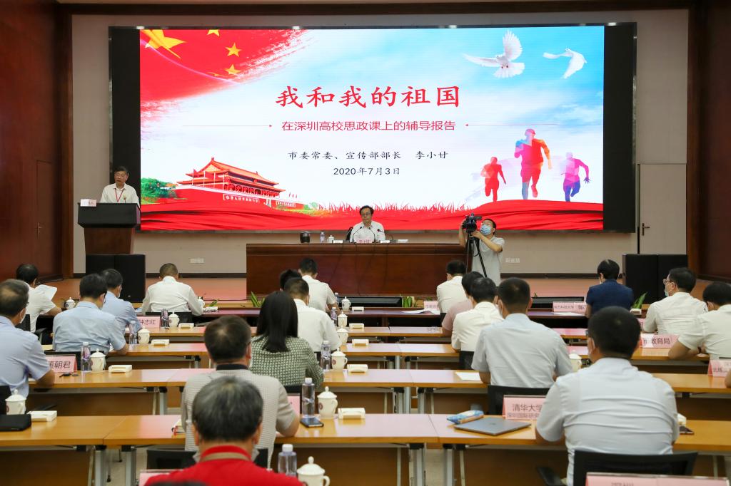 7月3日,市委常委、宣傳部部長李小甘到深圳職業技術學院,給廣大師生們上了一堂生動精彩的思政課,講課以“我和我的祖國”為主題,線上線下相結合,理論和實踐相融合,受到師生歡迎。現場及學校三個視頻分會場共近700名師生聆聽了講座。