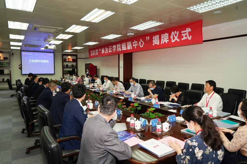 領(lǐng)導(dǎo)嘉賓共同為“華為云學(xué)院鯤鵬中心”揭牌。