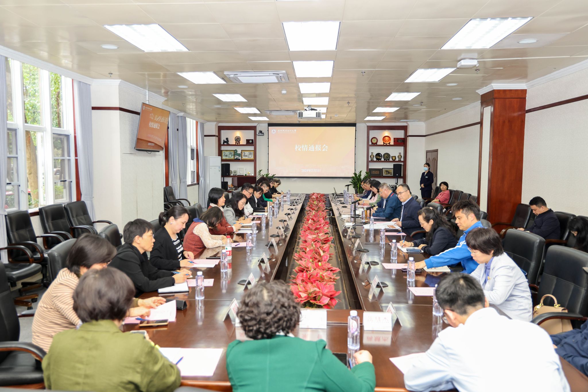 3月5日,學校在留仙洞園區明德樓109會議室召開校情通報會,學校黨委書記楊欣斌,黨委副書記、校長許建領通報近期學校重要事項。教授委員會成員代表、工會代表、教師代表等出席會議,相關職能部門主要負責同志列席會議。