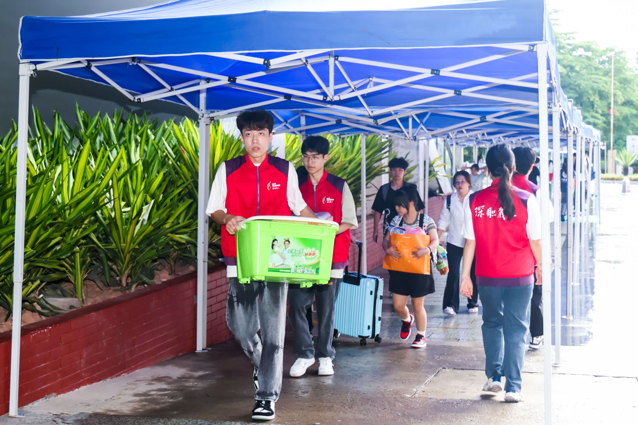 考慮到來自五湖四海的新生路途不便,學(xué)校在寶安機場、深圳北站、深圳站、深圳東站安排了9輛大巴車、4條線路的接機接站服務(wù)。在機場的到達廳、各站點接站口和上車點以及校園內(nèi)外都有舉牌、引導(dǎo)、行李搬運志愿者一路護送,給新生提供路徑引導(dǎo)、校園介紹、行李搬運、答疑解惑等服務(wù)。據(jù)統(tǒng)計,此次迎新全校共招募學(xué)生志愿者800余人次,志愿服務(wù)長達1600小時。