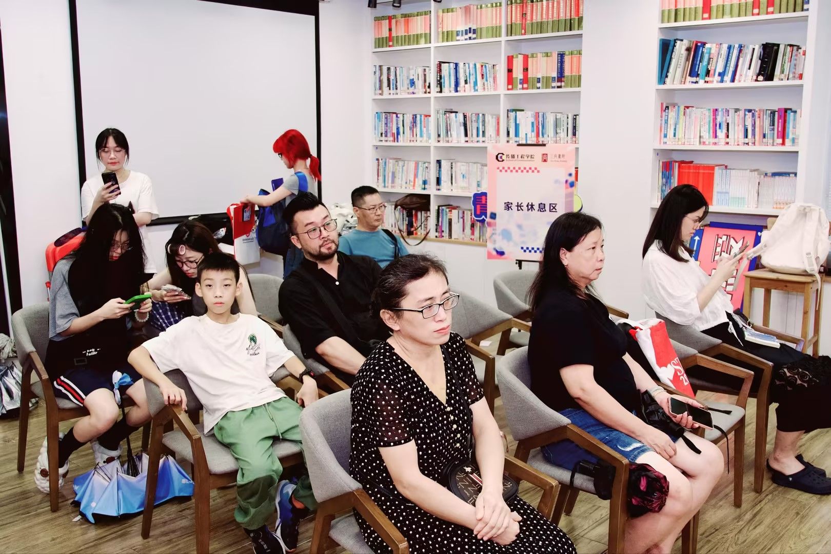 傳播學(xué)院則在宿舍區(qū)門口的書吧內(nèi)暖心設(shè)置了家長休息區(qū)。新生們辦理報到手續(xù)時,家長們可以在空調(diào)房里擦擦汗、歇歇腳。24級數(shù)字出版專業(yè)郭同學(xué)的媽媽說,“能一邊休息,一邊看著自家孩子‘一站式’走完所有報到流程,確實很舒適。給學(xué)校點贊!”