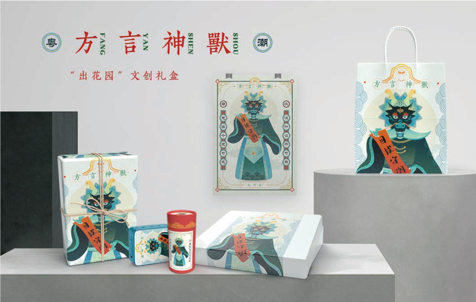 “硬虎”“刻苦驢”,一把把印有奇特文字的傳統手工編織扇子吸引了大家的注意。原來這些都是潮汕方言的音譯,“硬虎”意為“一定”的意思,“刻苦驢”是“努力干”的意思。《粵潮方言神獸》的設計團隊選取潮汕方言語音、字音、聲調,結合傳統文化、神獸形象和潮汕精神,創作出一系列文創作品。負責人陳梓博告訴我們,作為潮汕人,從小就在方言、神話和神獸的熏陶下長大。他們想通過現代化的設計方式,重新包裝古老的文化元素和制作工藝,為潮汕方言和傳統文化的傳承貢獻一份自己的力量。