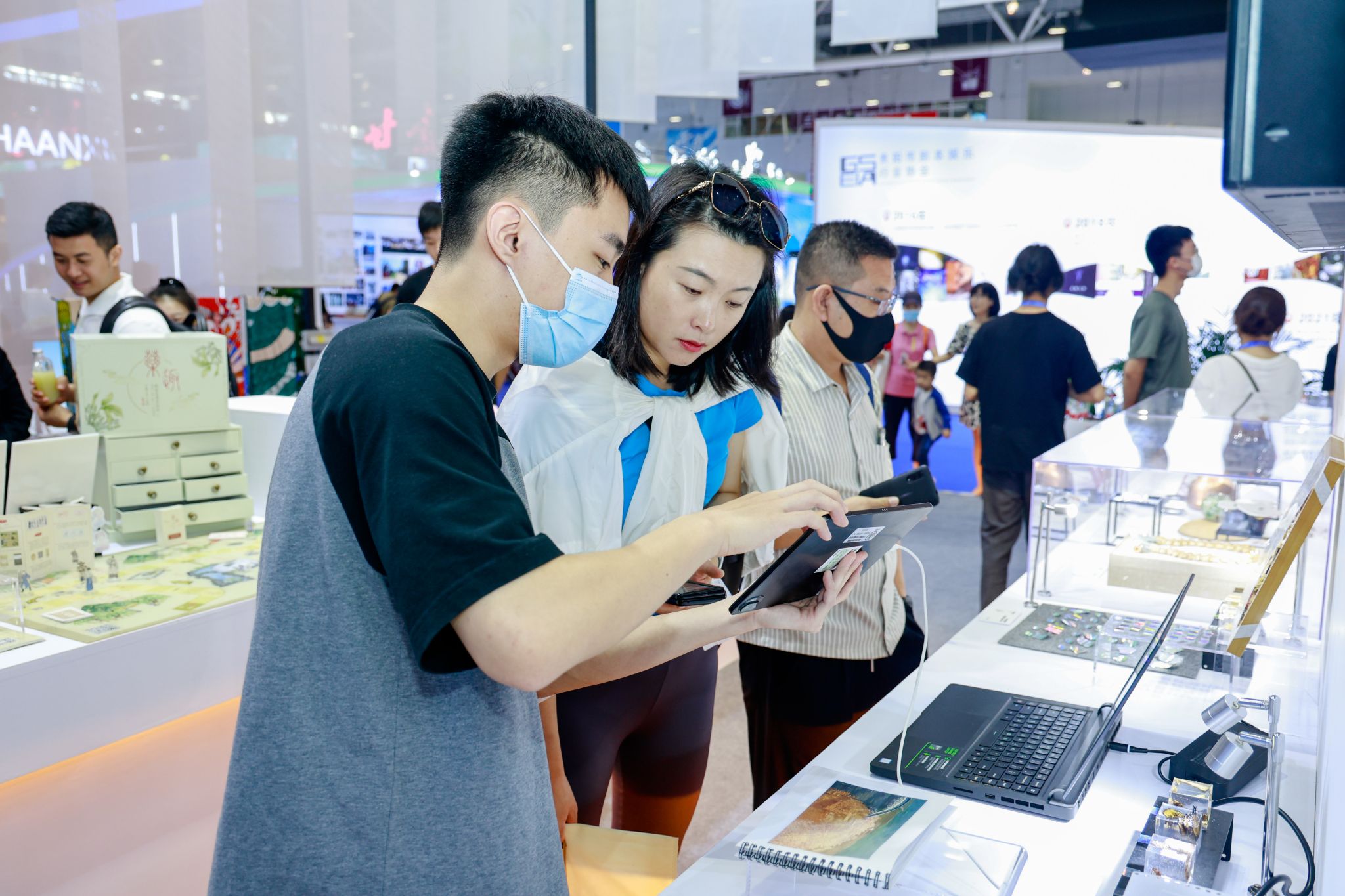 湖南永州《女書·她說》系列文創產品今年再次亮相文博會。傳播工程學院的宋海燕老師帶領非物質文化遺產藝術創新社的同學們,提取女書文字的造型特點和地域裝飾圖案,純手工制作了手包、絲巾等作品,展示出非遺活化再生設計的獨特魅力。學校通過項目化教學,依托工作室與企業合作,共同培養非遺文創人才。“有了文博會的平臺,學生和老師的作品能夠讓更多的人看到,也促使更多的企業參與合作,形成了良好的鏈條。”宋海燕表示。