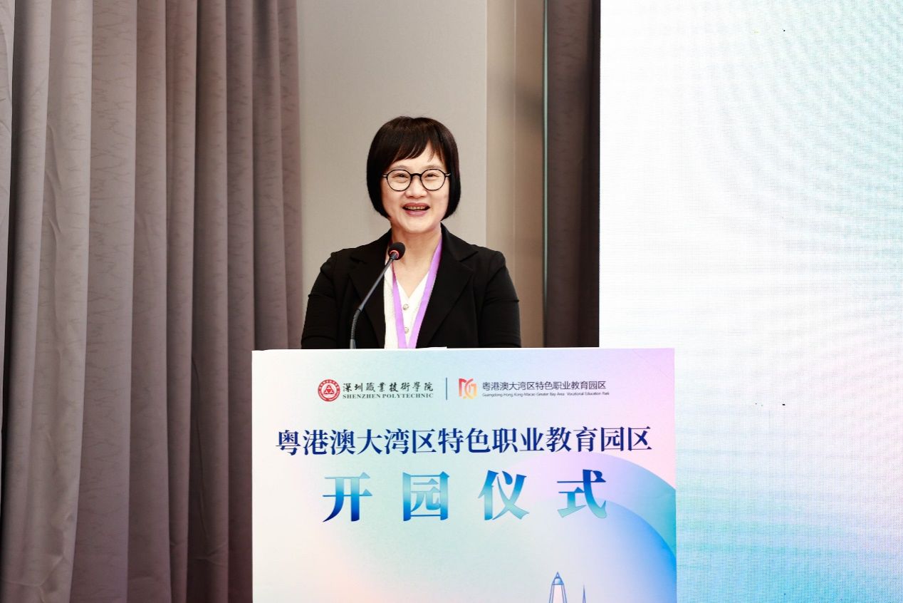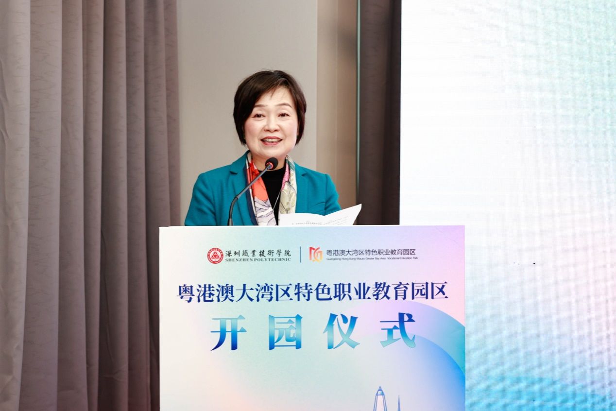 “建設粵港澳大灣區是習近平總書記親自謀劃、親自部署、親自推動的重大國家戰略?!痹诋斕焐衔缗e行的開園儀式上,吳艷玲在致辭中表示,深圳市推動深職院和職訓局共建職教園區,是職業教育高質量發展的重大標志性成果,是產學研深度融合的典范,是創新大灣區職業教育合作辦學的先鋒嘗試,對灣區職業教育高質量發展具有里程碑意義。她希望深圳能積極探索園區建設,創新管理體制機制,豐富產學研合作內容,形成更多可復制、可推廣的經驗。也期望香港能發揮職業教育優勢,將更多好的資源、好的經驗,好的做法引入到職業教育園區建設中來。