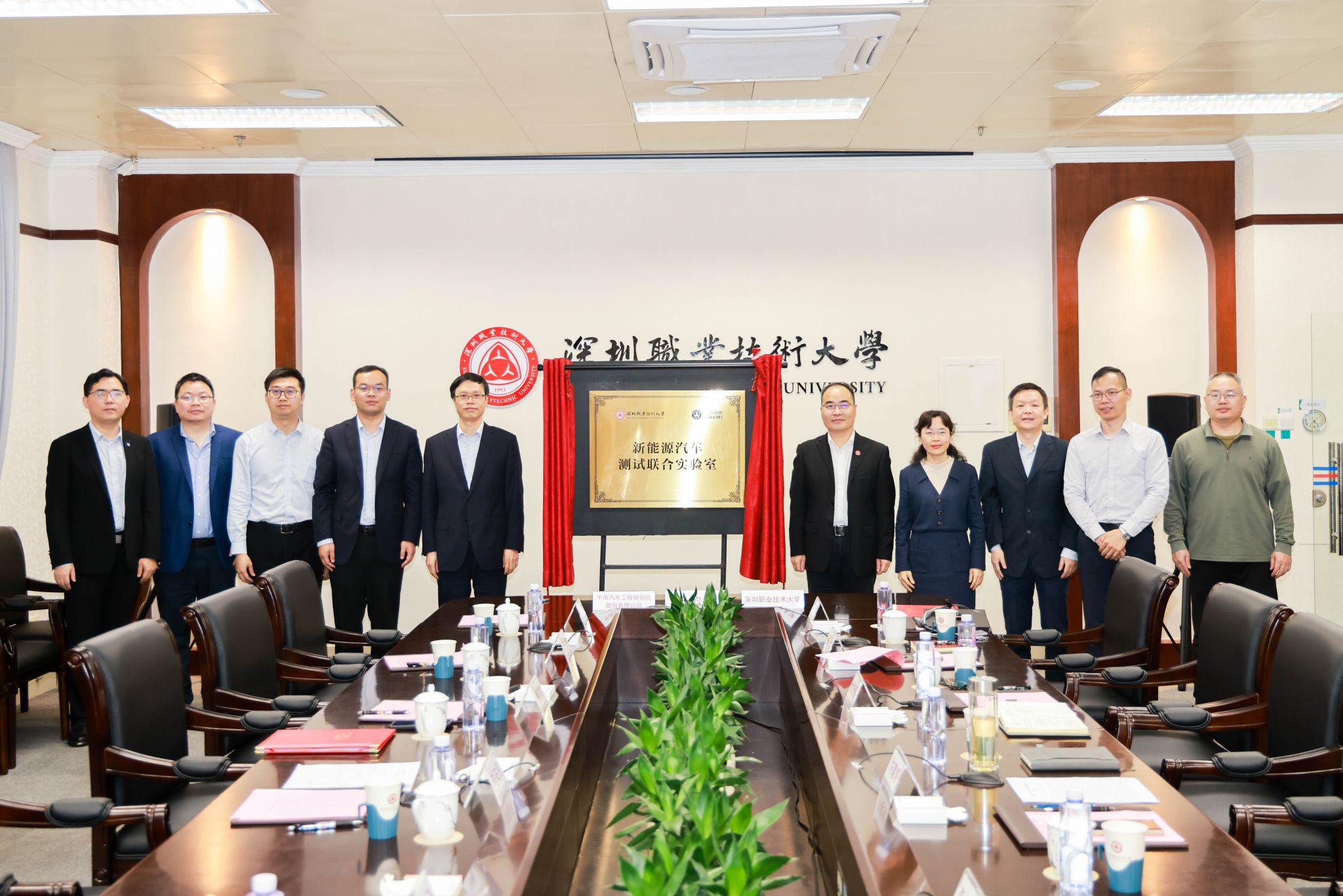雙方代表簽署了戰略合作框架協議,共同為“新能源汽車測試聯合實驗室”揭牌。聯合實驗平臺的建立,將為校企雙方在新能源汽車前沿技術研究、人才培養、產品測試、標準研制、社會服務等提供廣闊的合作空間,進一步助力學校學科建設與人才培養,為深圳汽車產業提供更加堅實的技術支撐和人才保障。