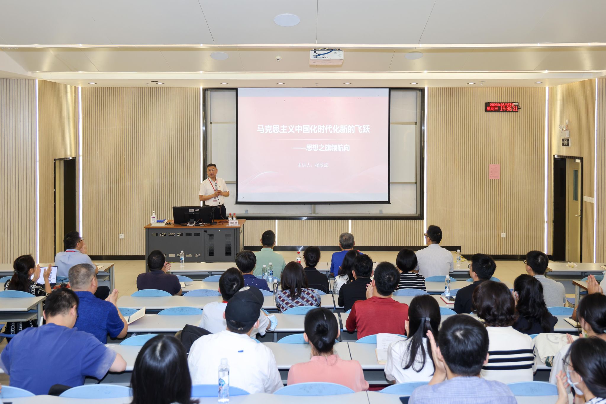 近日,為深入開展學(xué)習(xí)貫徹習(xí)近平新時(shí)代中國(guó)特色社會(huì)主義思想主題教育,根據(jù)學(xué)校主題教育工作安排,校領(lǐng)導(dǎo)為師生黨員講授專題黨課。楊欣斌為機(jī)關(guān)教輔黨委和馬院教師黨員講授黨課。6月7日,學(xué)校黨委書記楊欣斌在留仙洞校區(qū)德業(yè)樓講授專題黨課,機(jī)關(guān)教輔黨委教工黨員和馬克思主義學(xué)院教師黨員共80余人參加了學(xué)習(xí)。本次黨課的主題是“馬克思主義中國(guó)化時(shí)代化新的飛躍——思想之旗領(lǐng)航向”。楊欣斌通過列舉大量生動(dòng)詳實(shí)的案例,緊密...
