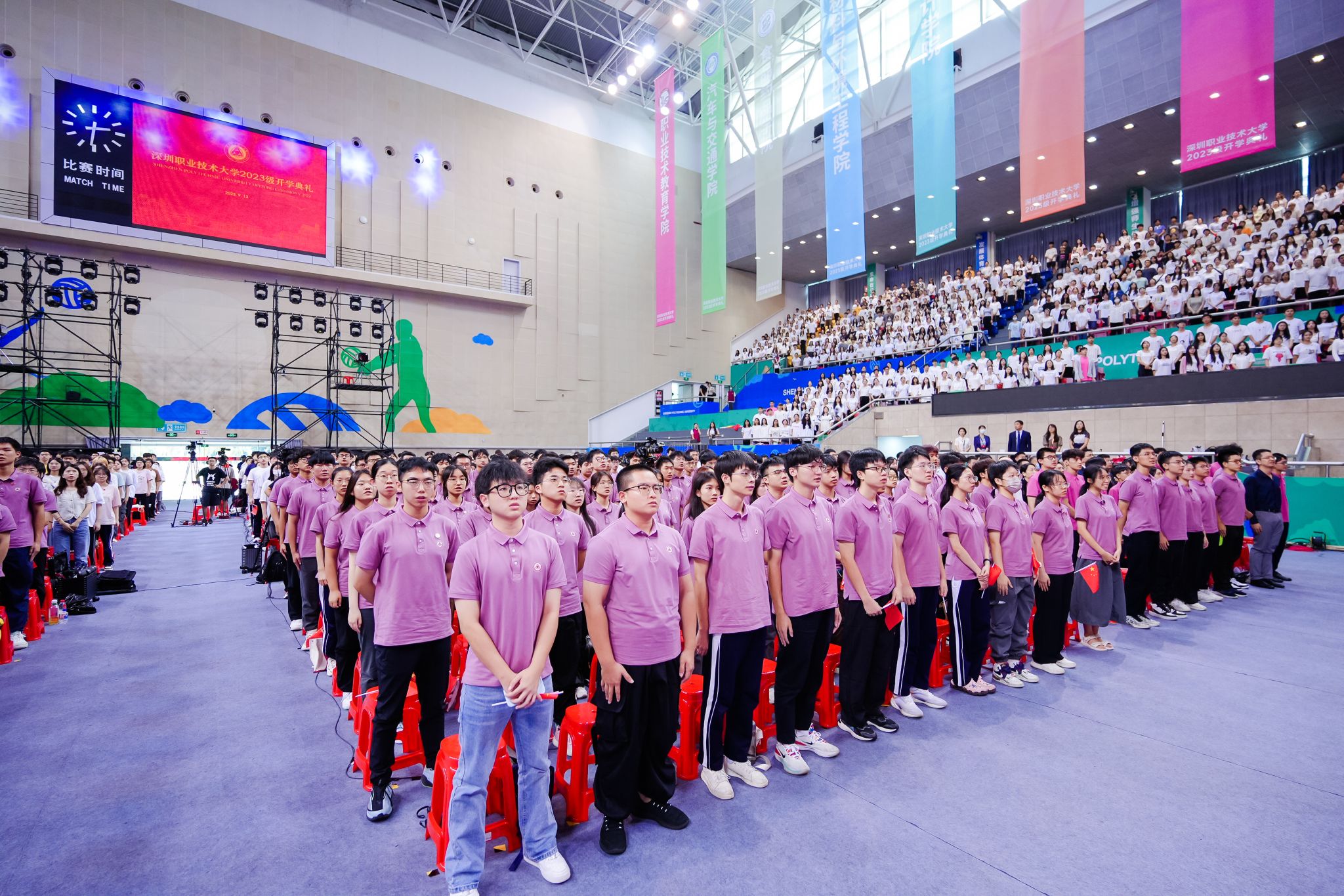開學典禮在西麗湖校區體育館舉行。?9月13日,深圳職業技術大學2023級新生開學典禮在西麗校區體育館舉行。學校校長許建領,黨委副書記、紀委書記王慧,副校長李月、李小元、張作泰出席典禮。各二級學院、各職能處室負責人,教師代表、班主任代表、新生輔導員代表和2023級3000余名新生代表現場參會。其余新生通過微信視頻號、嗶哩嗶哩網站線上同步觀禮。典禮由副校長董朝君主持。暖場環節唱出了新時代青年人的朝氣和自豪。下午2:...
