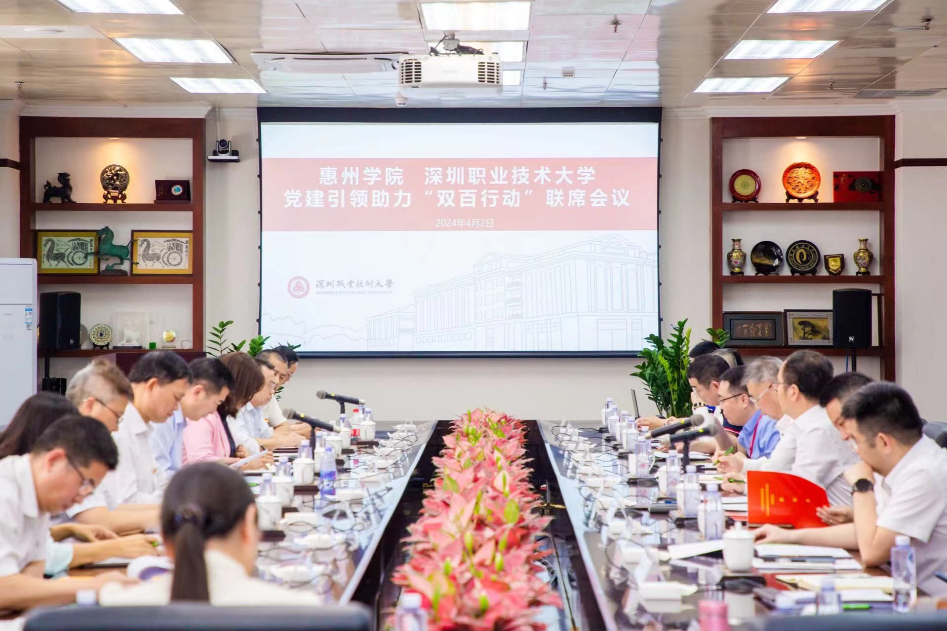 為進一步強化黨建引領,凝聚共識,匯聚力量,扎實推進“雙百行動”落地見效,4月2日,我校與惠州學院在留仙洞園區明德樓109會議室召開黨建引領助力“雙百行動”聯席會議。學校黨委書記楊欣斌,惠州學院黨委書記彭永宏、黨委副書記車小真出席會議。會議由學校黨委副書記、校長許建領主持。黨政辦公室、組織人事處、對口支援辦公室、宣傳部、科研處、駐縣工作組等部門負責人參會。會上,兩校共同回顧了“雙百行動”結對共建開展情...