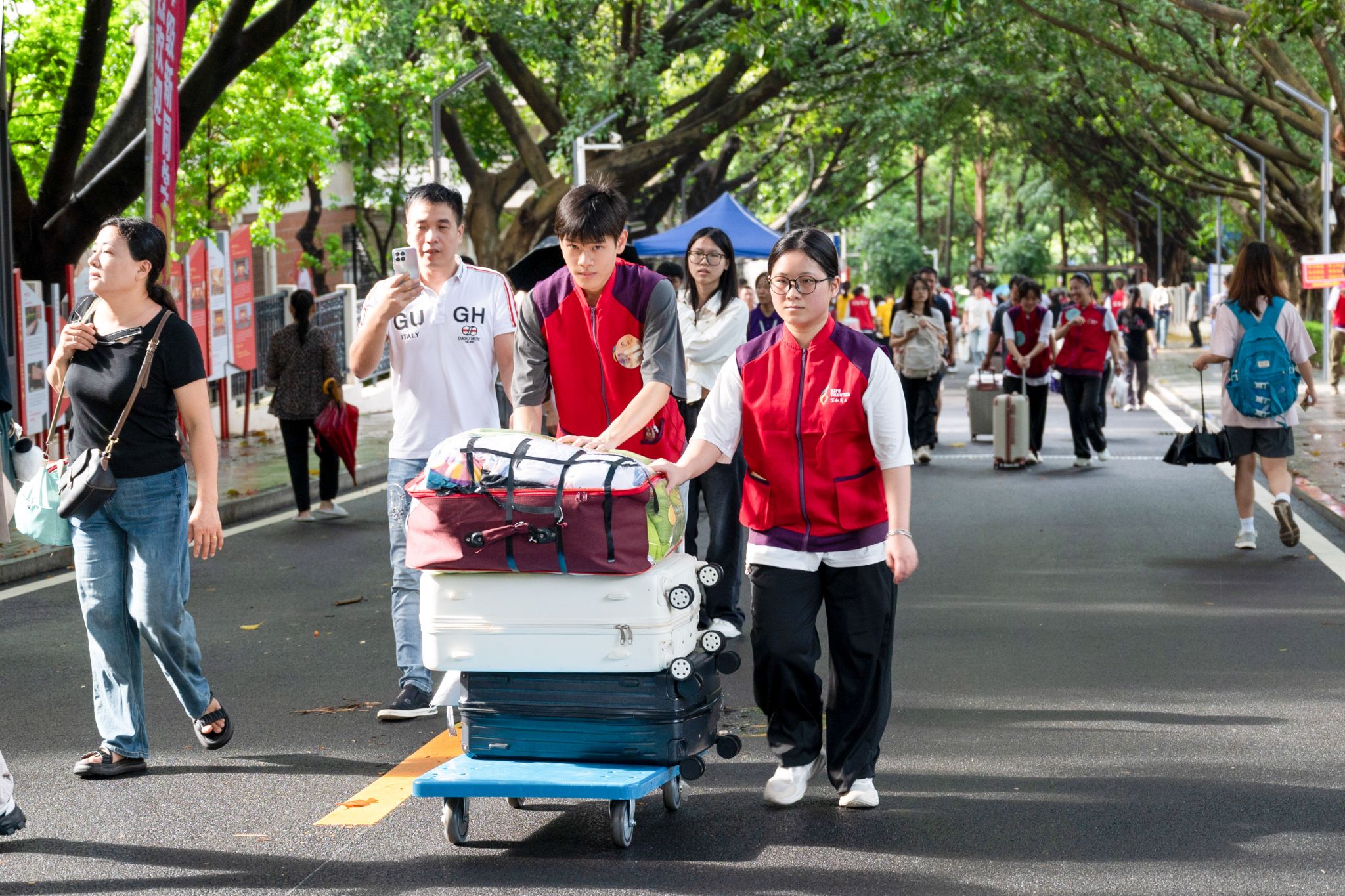 學校迎來9000余名2024級??菩律?。秋雨浸潤洗塵后,迎新啟航萬象新。9月7-8日,深圳職業技術大學迎來9000余名2024級專科新生。一大早,學校黨委書記楊欣斌,黨委副書記、校長許建領,副校長董朝君、李小元及相關部門負責人就來到迎新現場,詳細了解各學院的新生報到人數、報到流程、各類物資保障等情況,向滿懷憧憬的新同學們表示熱烈歡迎,也為現場辛勤工作的教職員工及志愿者團隊送上誠摯感謝。楊欣斌與新生親切交談。海依拉...