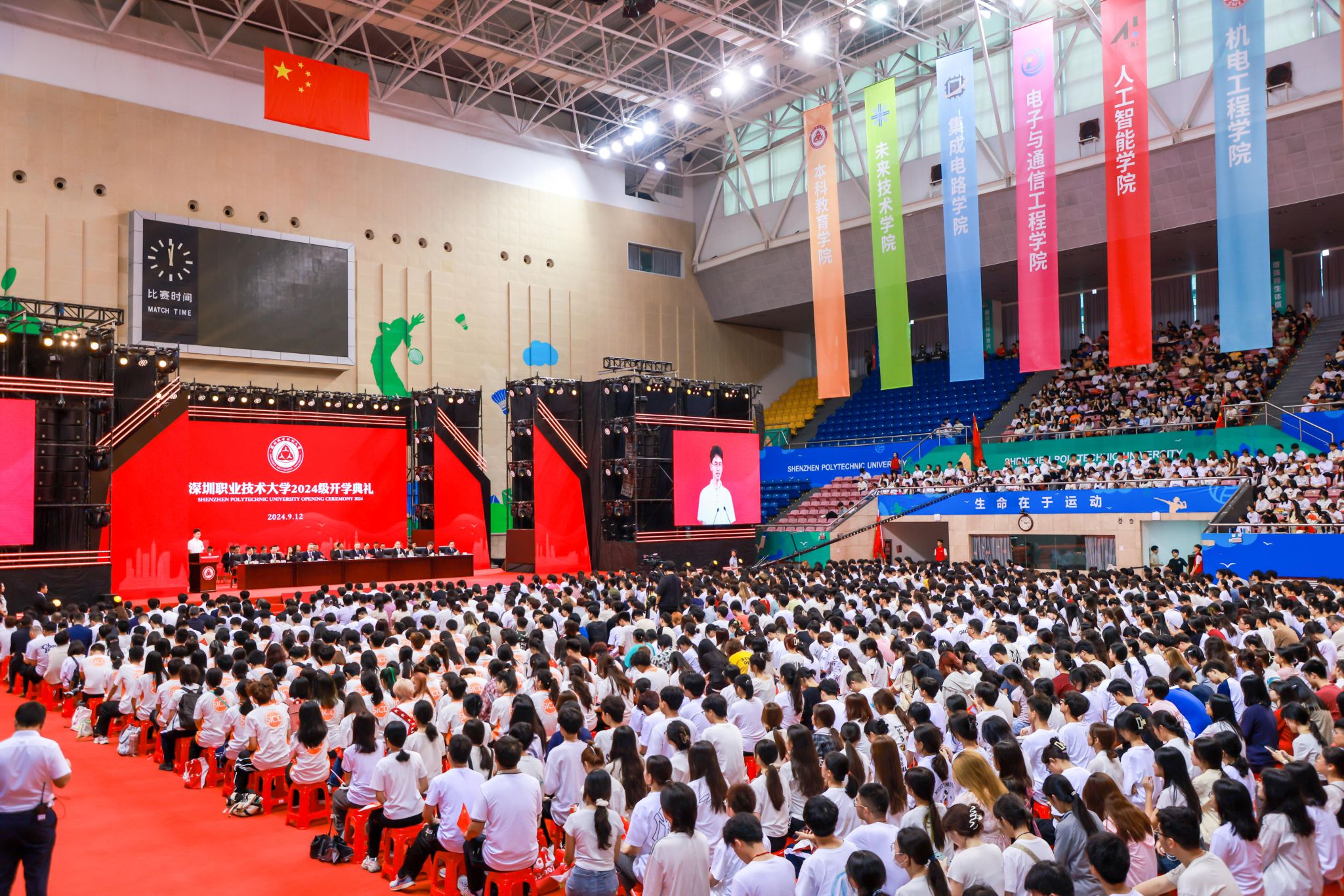 開學典禮在西麗校區體育館舉行。學校黨委書記楊欣斌,黨委副書記、校長許建領,全體黨委委員,各二級學院院長、書記在主席臺就座。9月12日,深圳職業技術大學2024級新生開學典禮在西麗校區體育館舉行。學校黨委書記楊欣斌,黨委副書記、校長許建領,全體黨委委員,各二級學院院長、書記在主席臺就座。各職能處室負責人,各二級學院副書記、教師代表、班主任代表、新生輔導員代表和2024級2300余名新生代表參加典禮。各學院設置直...