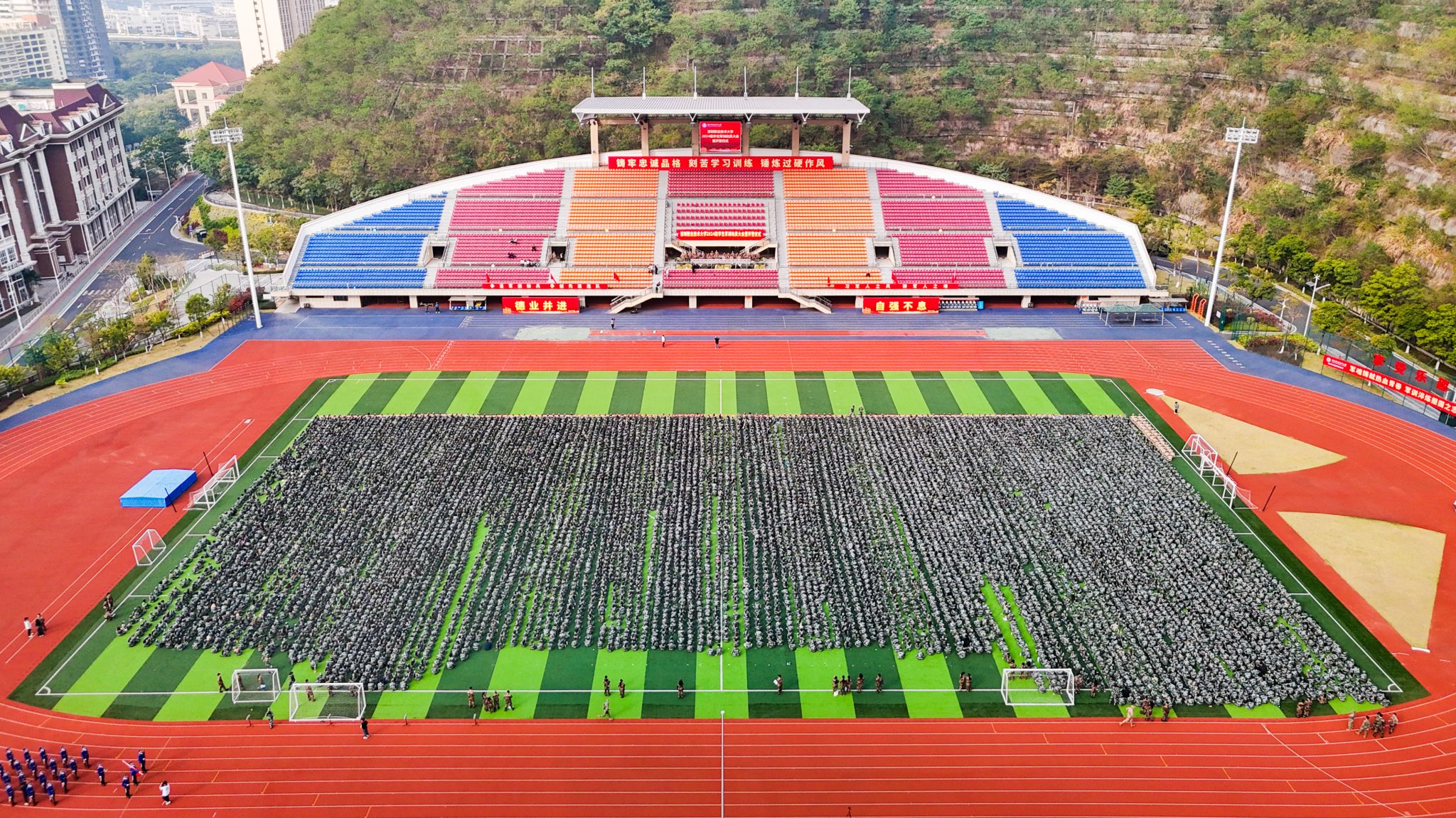 開營儀式于留仙洞園區體育場舉行。軍魂礪青春,軍訓映芳華。1月5日,深圳職業技術大學2024級學生軍訓動員大會暨開營儀式于留仙洞園區體育場舉行。承訓部隊大校王勇民、學校副校長董朝君,軍訓團團長姜華上校出席大會。學生處、武裝部及各二級學院分黨委(總支)相關負責人參加大會。國旗護衛隊員。09時30分,儀式準時開始。英姿颯爽的國護隊員,著裝整齊,步伐鏗鏘有力,在雄壯的國歌聲中,莊嚴地升起五星紅旗。隨后,董朝君進...